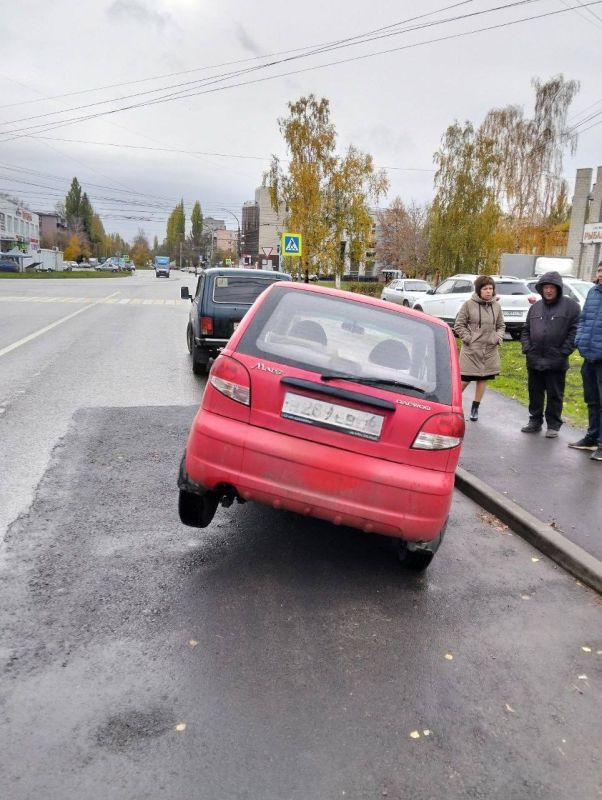 Очередной инцидент, связанный с качеством дорожного ремонта, произошел в Курске. На перекрестке улиц Гагарина и Серёгина легковой автомобиль «Дэу Матиз» провалился передним колесом в глубокую яму, образовавшуюся на проезжей части.